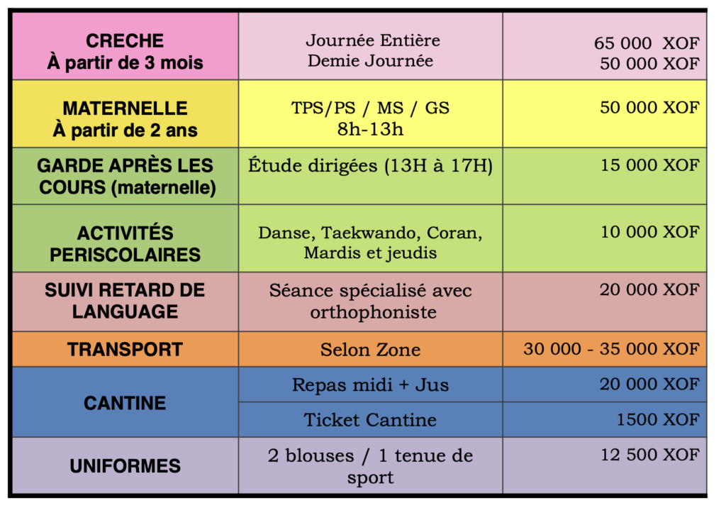 • Lors de l’inscription, ou de la réinscription, vous aurez à payer les frais d’inscription (ou de réinscription) + la dernière mensualité.